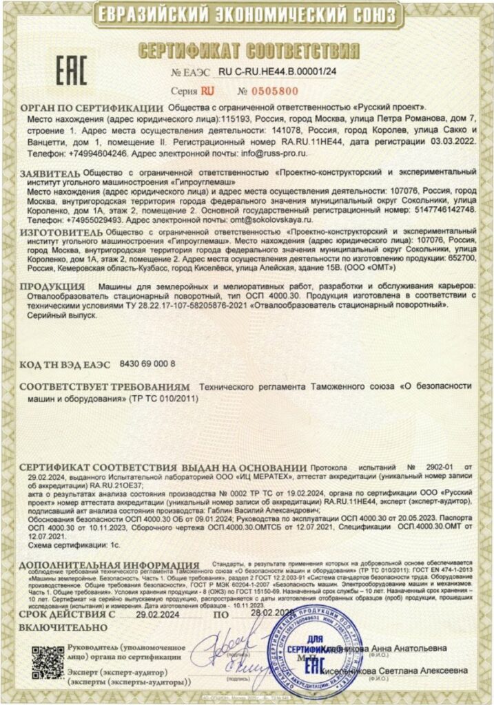 ОМТ широко использует опыт конструкторских бюро как российских, так и лучших представителей немецкого машиностроения, таких как ОНЕ, Takraf, TissenKrupp, Dobersek.